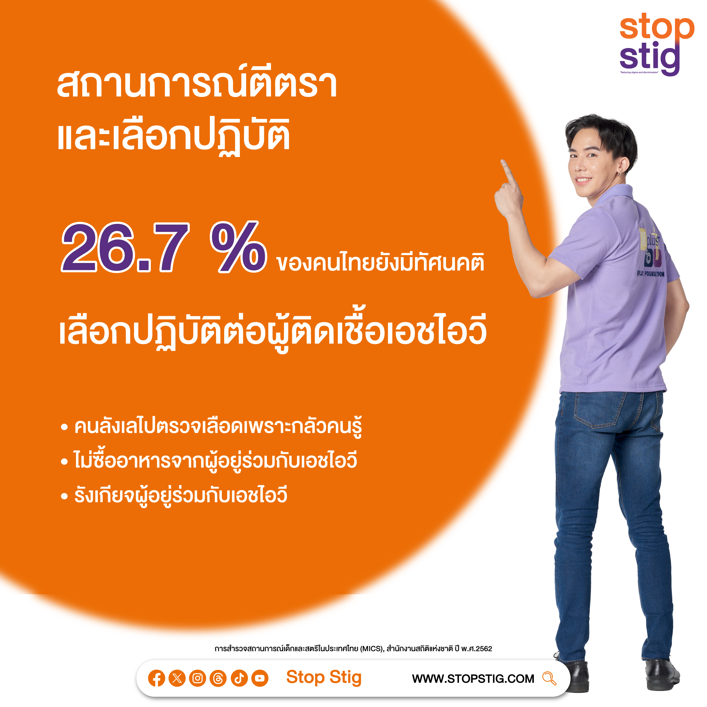จากการสำรวจพบว่า 26.7 % ของคนไทยยังมีทัศนคติที่ไม่ดีต่อผู้อยู่ร่วมกับผู้อยู่ร่วมกับเอชไอวี